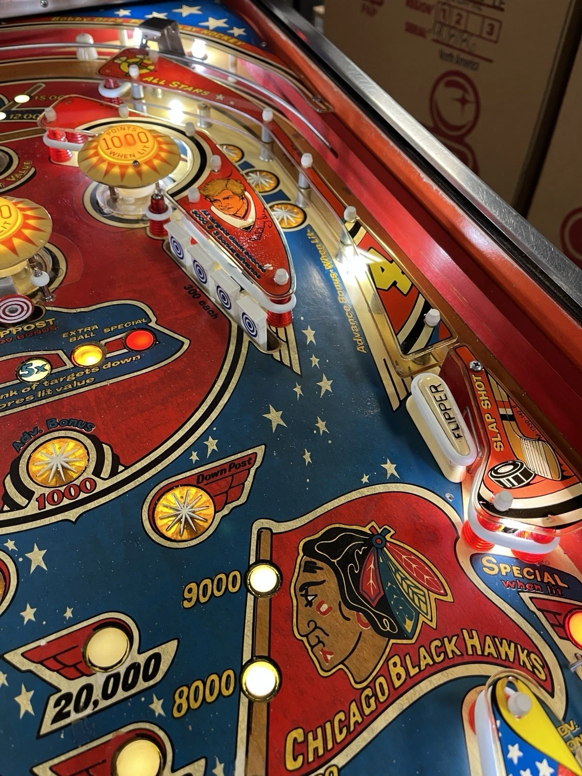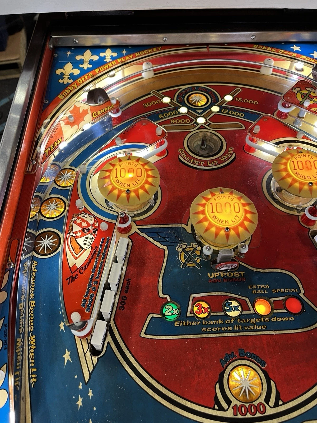 This Bobby Orr Power Play Pinball Machine has been professionally restored: