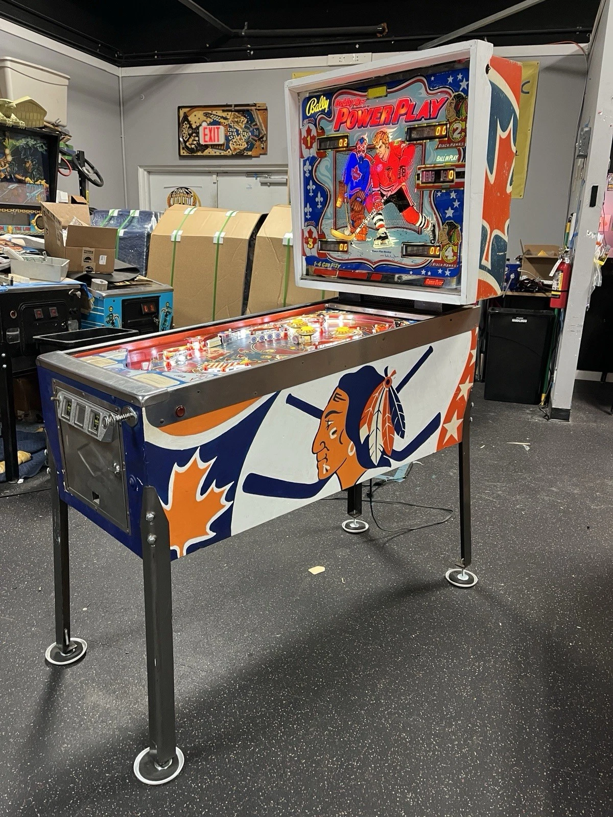 Bobby Orr Power Play pinball machine, 1978 Bally pinball, fully serviced pinball machine, collectible sports pinball, vintage hockey pinball, retro 1970s pinball machine, Bally arcade hockey game, home arcade pinball, smooth gameplay pinball, classic hockey pinball machine.