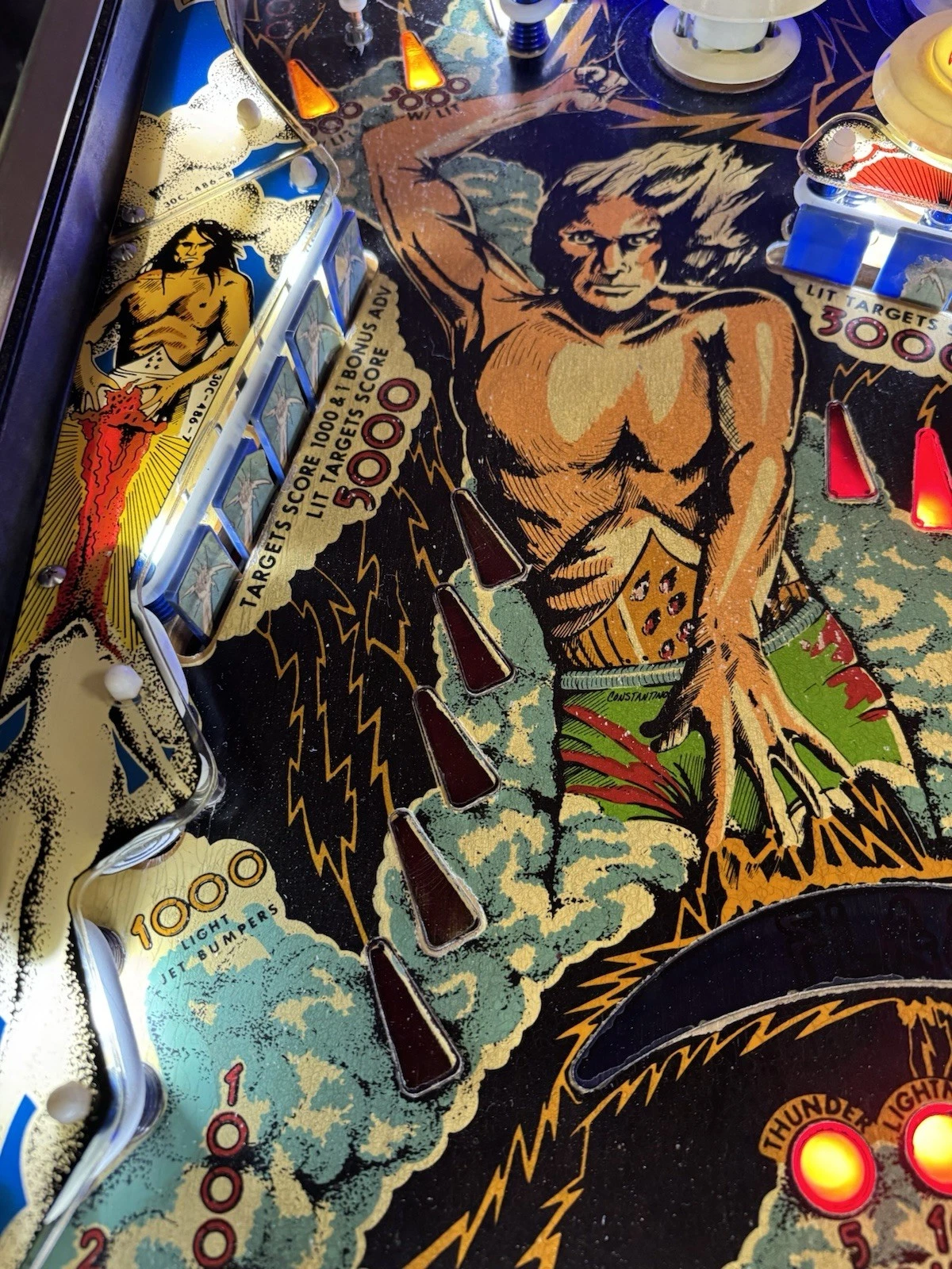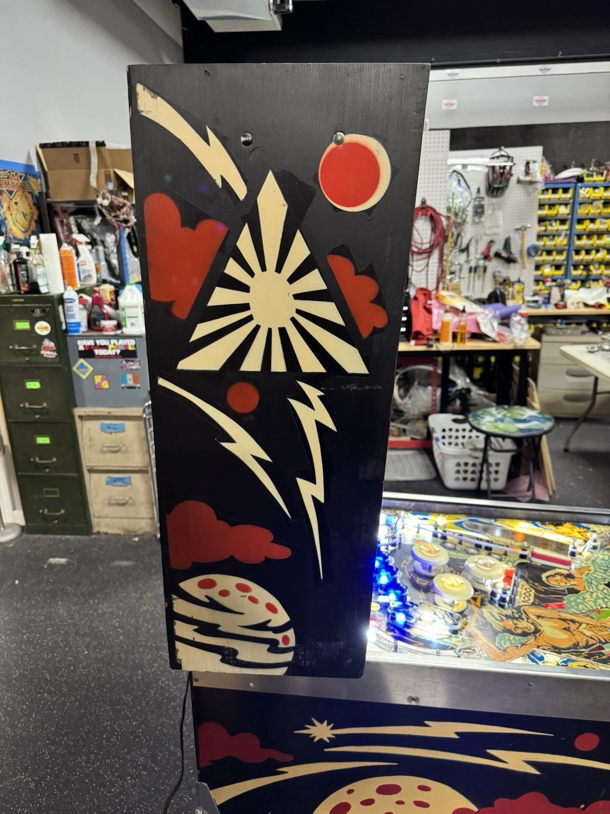 - Timeless Art Design – Bold lightning-themed cabinet and colorful playfield.