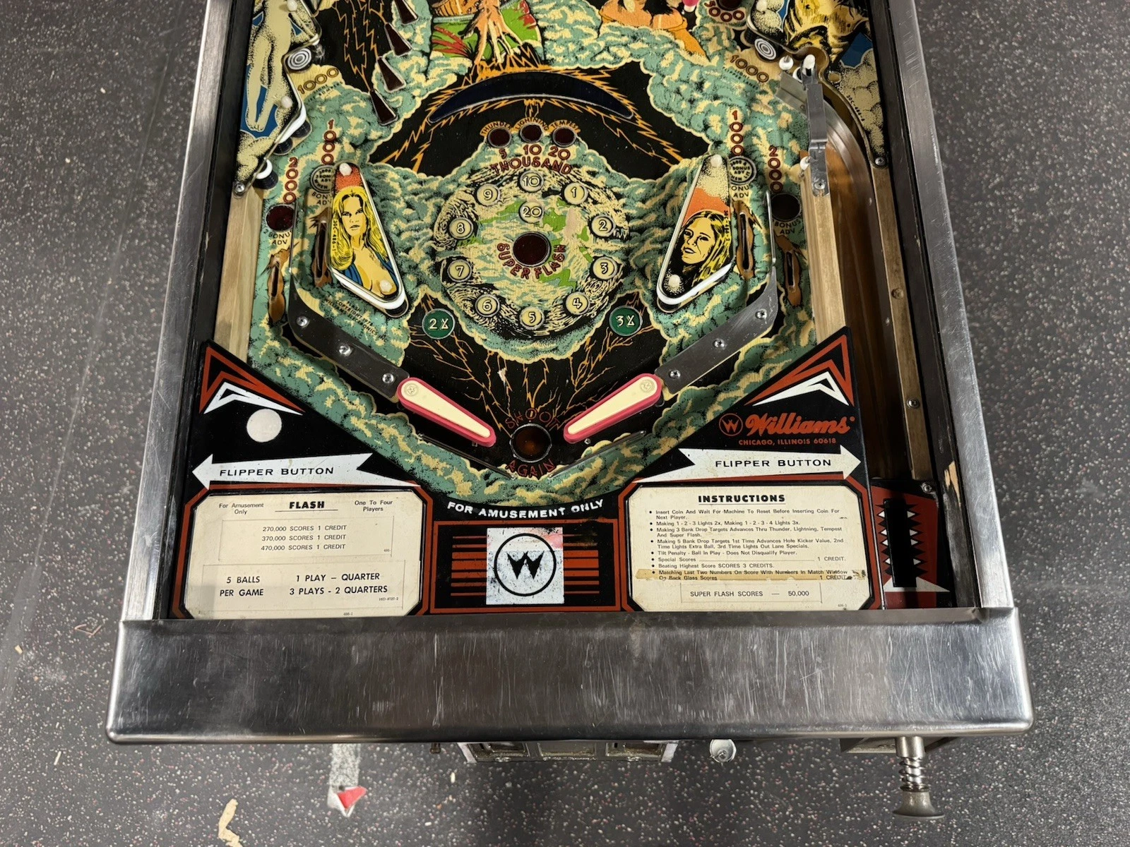 1978 Flash Pinball Machine, Williams Flash Pinball, Steve Ritchie pinball, vintage pinball machine for sale, classic arcade game, retro pinball collectible, 1970s pinball, Flash pinball review, restored Flash pinball machine, high‑value pinball collectible, pinball machine for game room.
