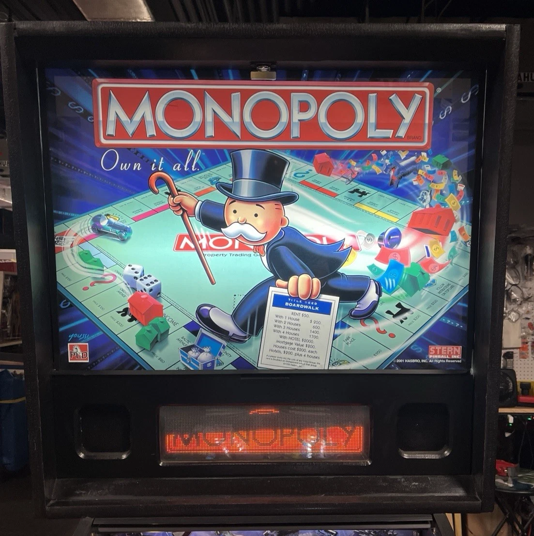 Backglass Artwork – Illustrates Mr. Monopoly, classic properties, and themed game elements.
