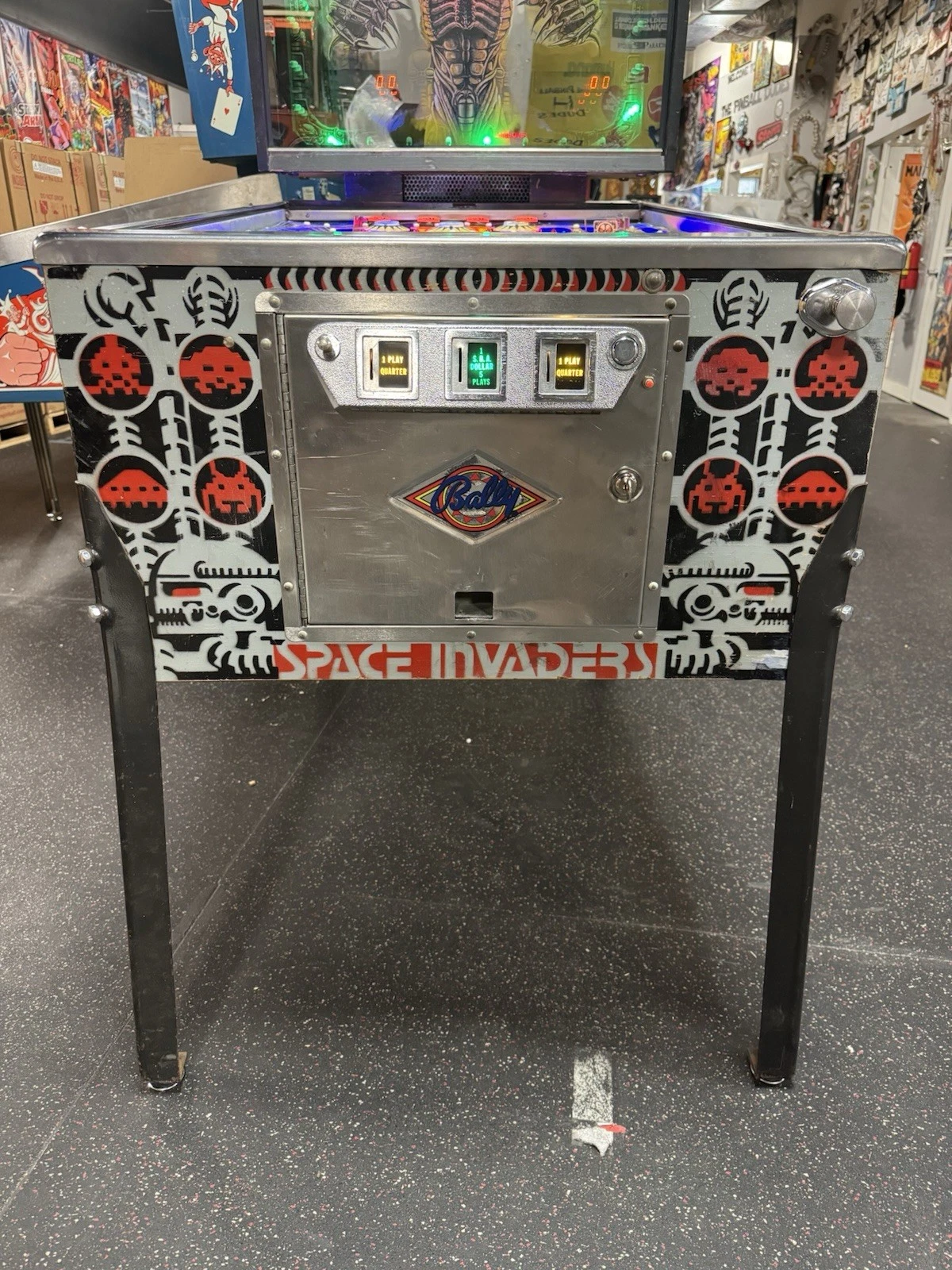 Space Invaders pinball machine 1980, Bally Space Invaders pinball, fully serviced vintage pinball, classic arcade pinball machine, Space Invaders collectible, retro 1980s pinball, arcade video game pinball, Space Invaders home arcade, smooth gameplay pinball, iconic Bally pinball machine.