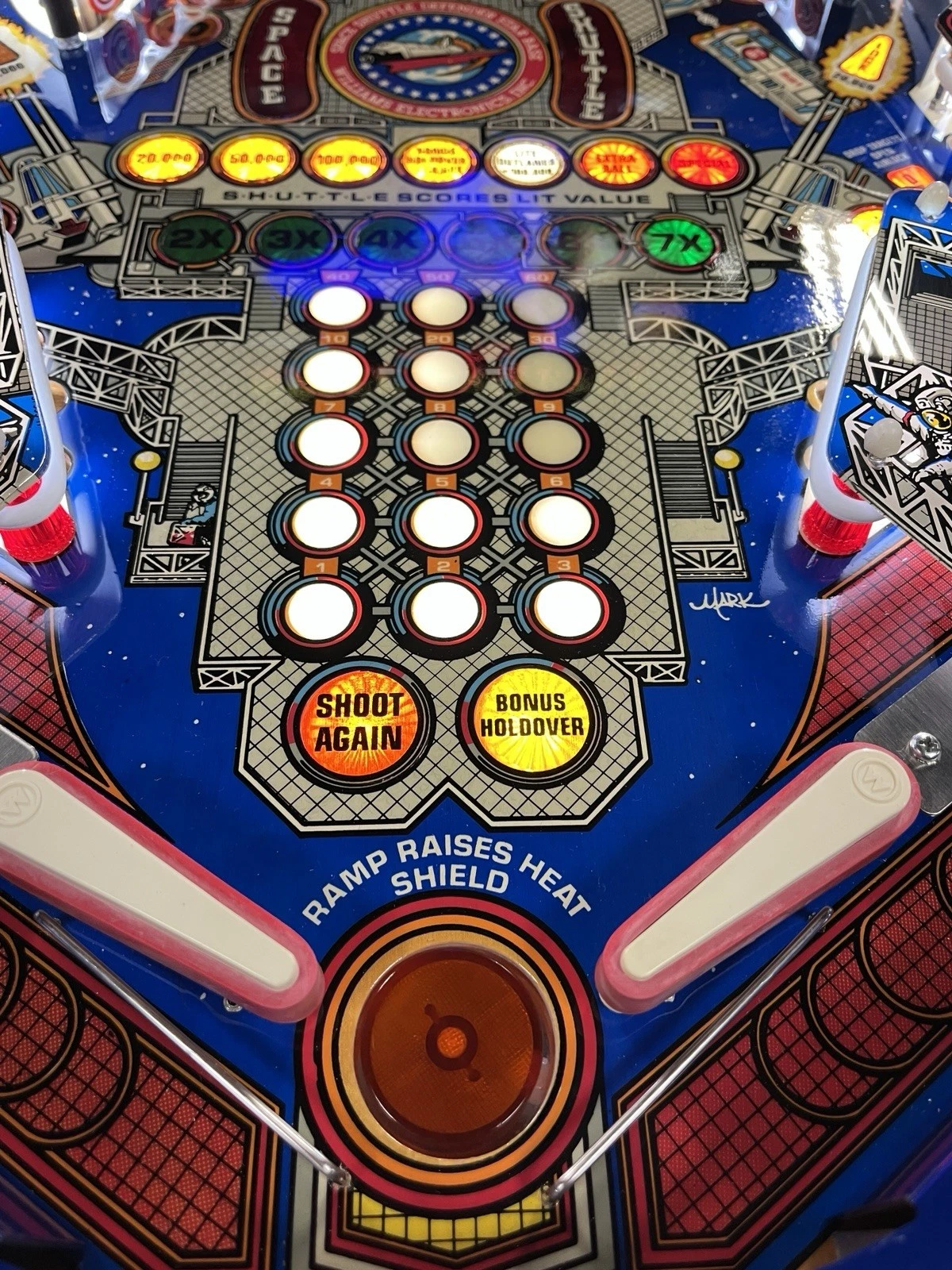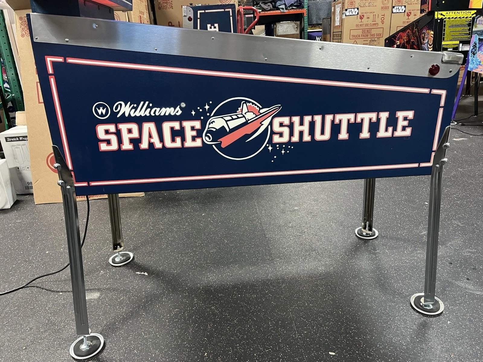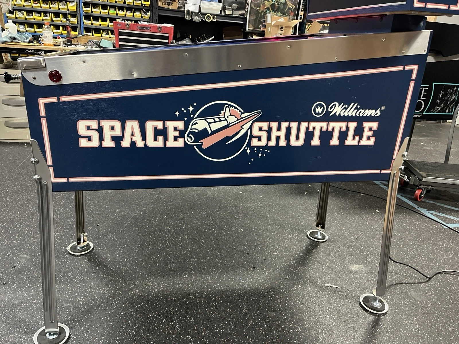 Space Shuttle pinball machine 1984, Williams Space Shuttle pinball, fully serviced pinball machine, LED upgraded pinball, vintage Williams arcade game, collectible Space Shuttle pinball, retro space pinball machine, 1980s Williams pinball, smooth gameplay pinball, classic space-themed pinball.