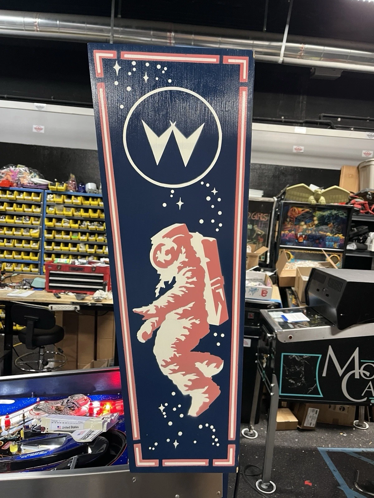 Cabinet Artwork – Extends the space adventure around the sides with bold graphics, creating a visually striking piece.