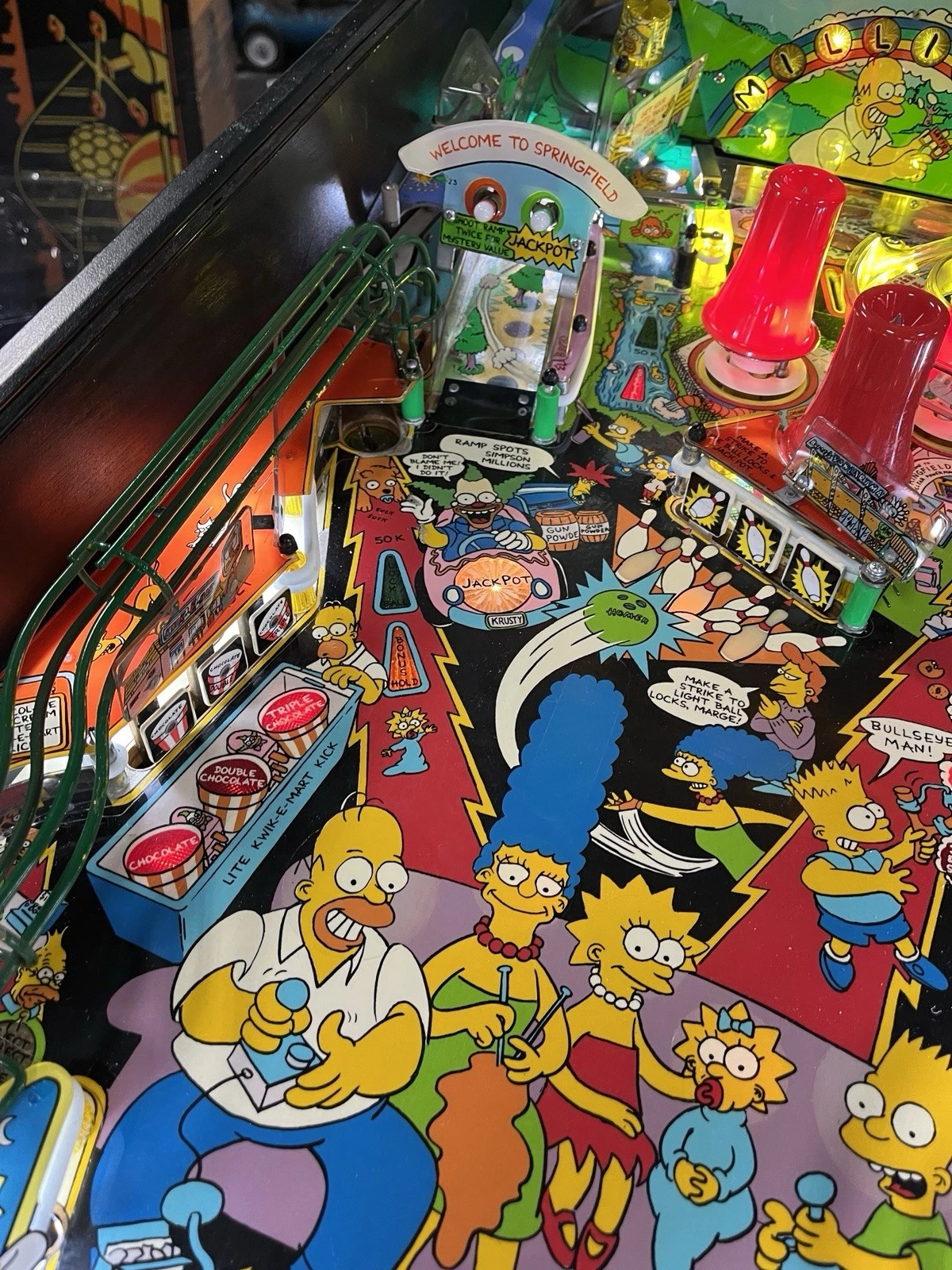 Targets and Bumpers – Hit Simpsons characters and Springfield locations for points.